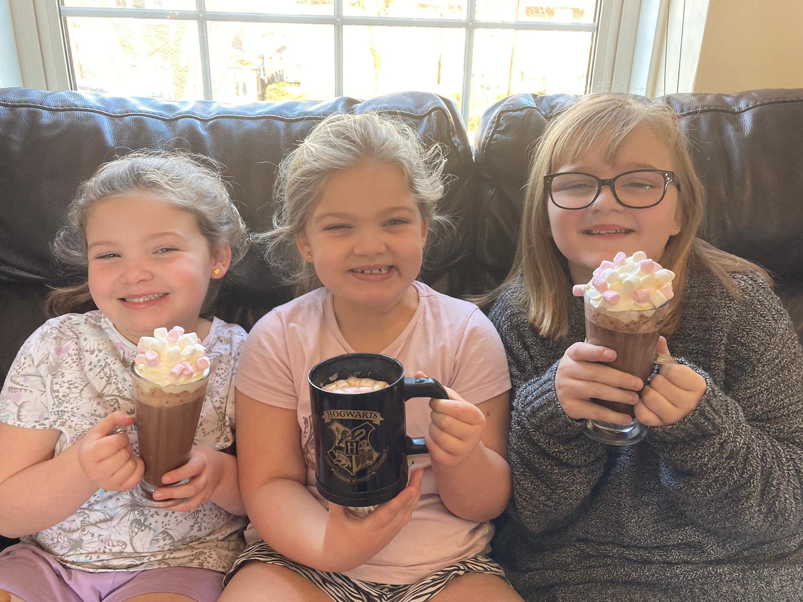 Olivia, Jessica and Millie enjoyed a mug of hot chocolate from the Star of the Week goody bag!