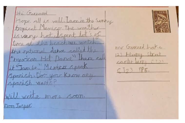 Lucas and Jasper wrote postcards from Mexico.