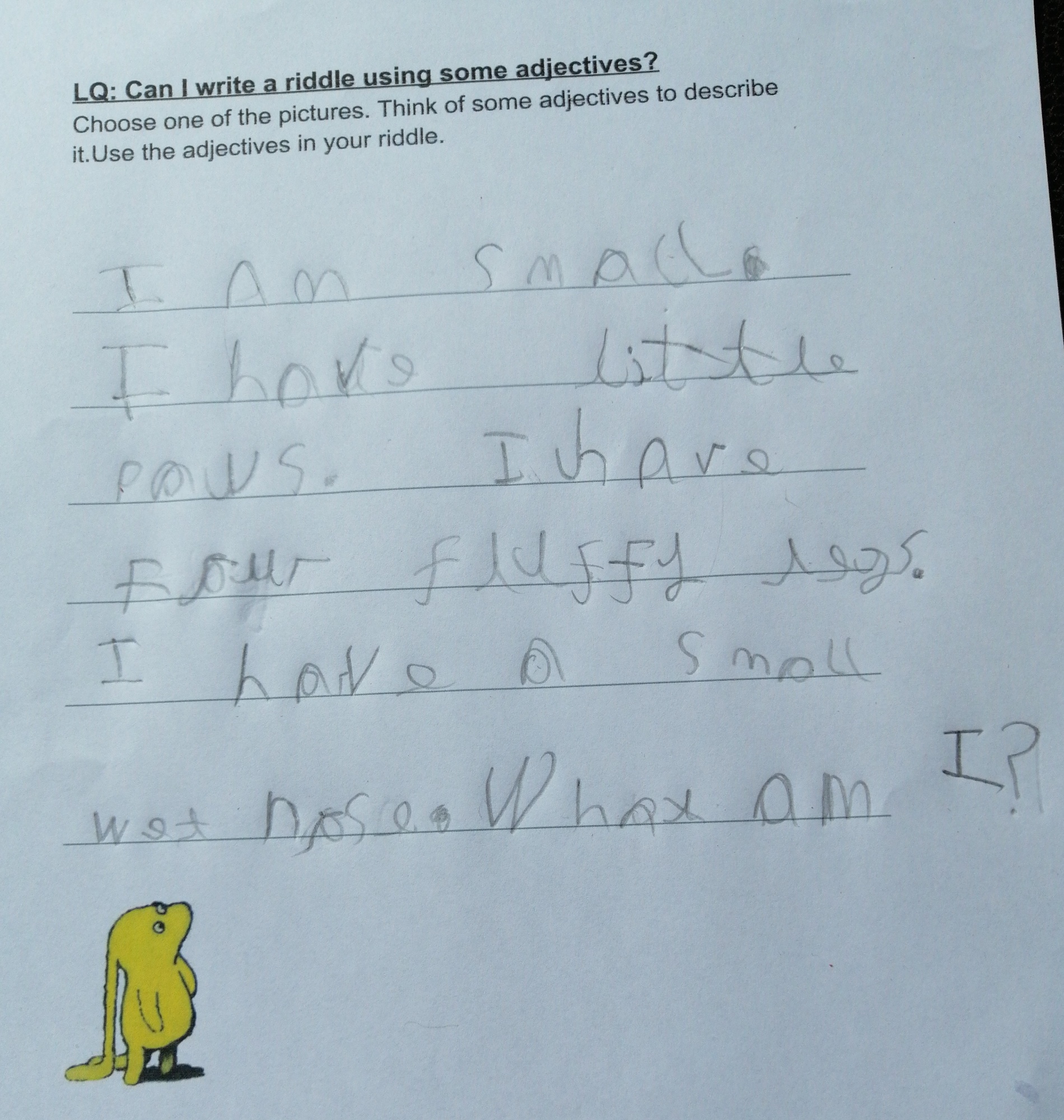 ... and Lacey wrote a brilliant descriptive riddle about an animal from the Beegu story. Can you guess what it is?